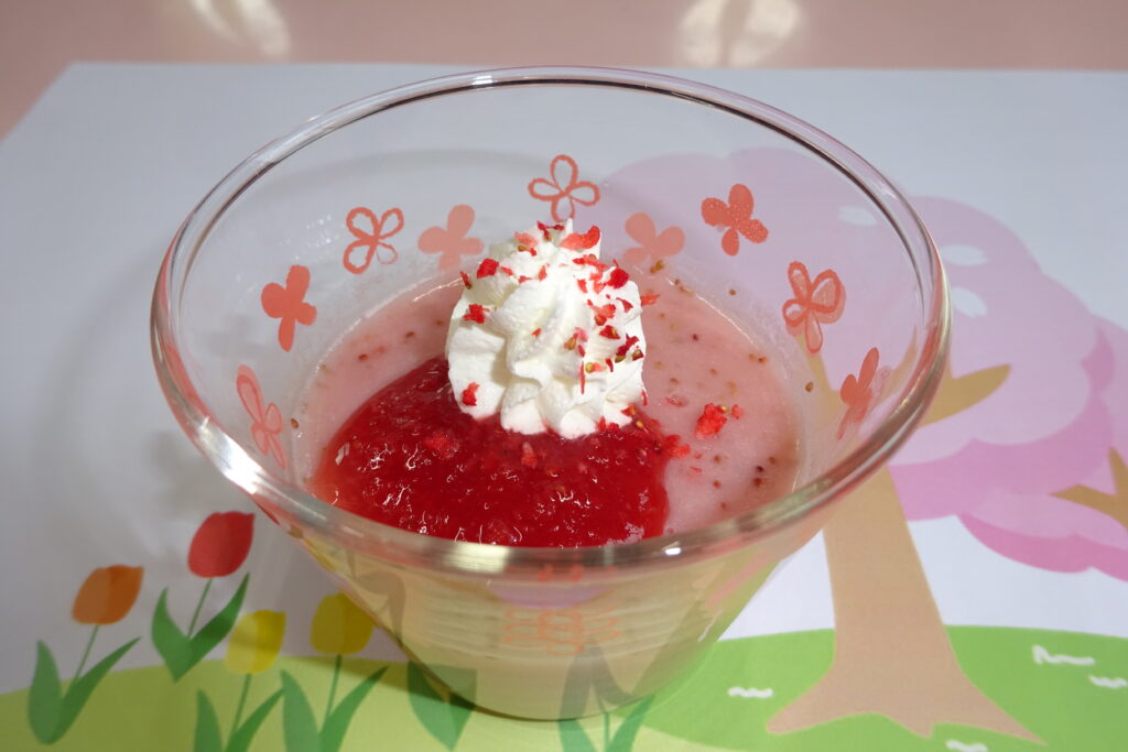 冷凍いちごをフードプロセッサーにかけて作ったプリンです。