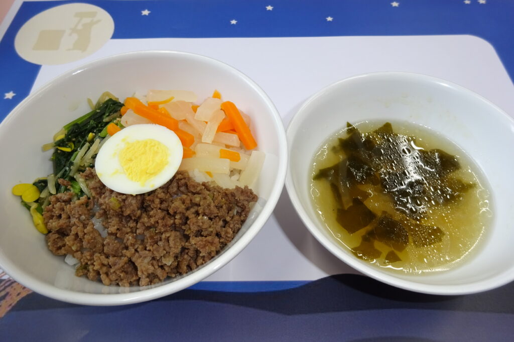 今日は十五夜さん。わんぱくはうすではお月様のお話をした後、恒例の「かづの牛のお月見ビビンバ」と春雨スープを食べました。